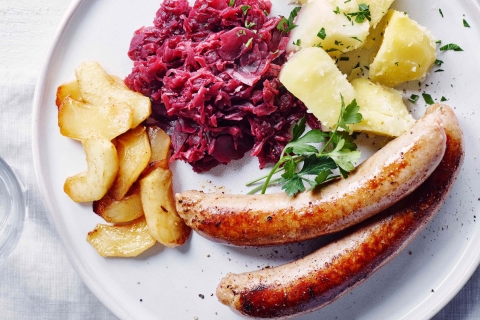 Worst met gebakken appeltjes en rode kool - Davy Verfaillie